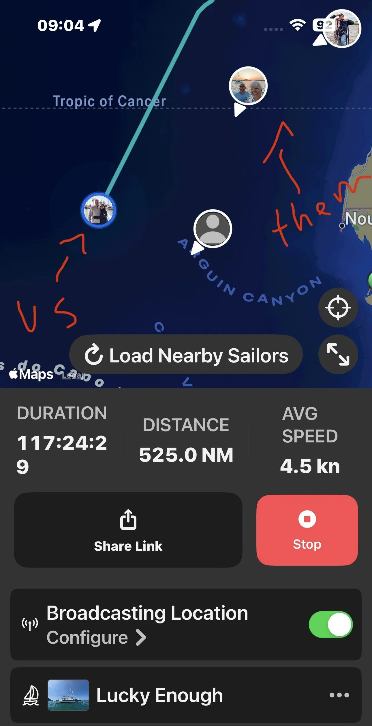 I also grabbed a screenshot showing where Al and Judi were compared to us. We look closer together on the map than we actually are, but it was still comforting—and a little surreal—to see both our boats on the same screen in the vast expanse of the Atlantic.