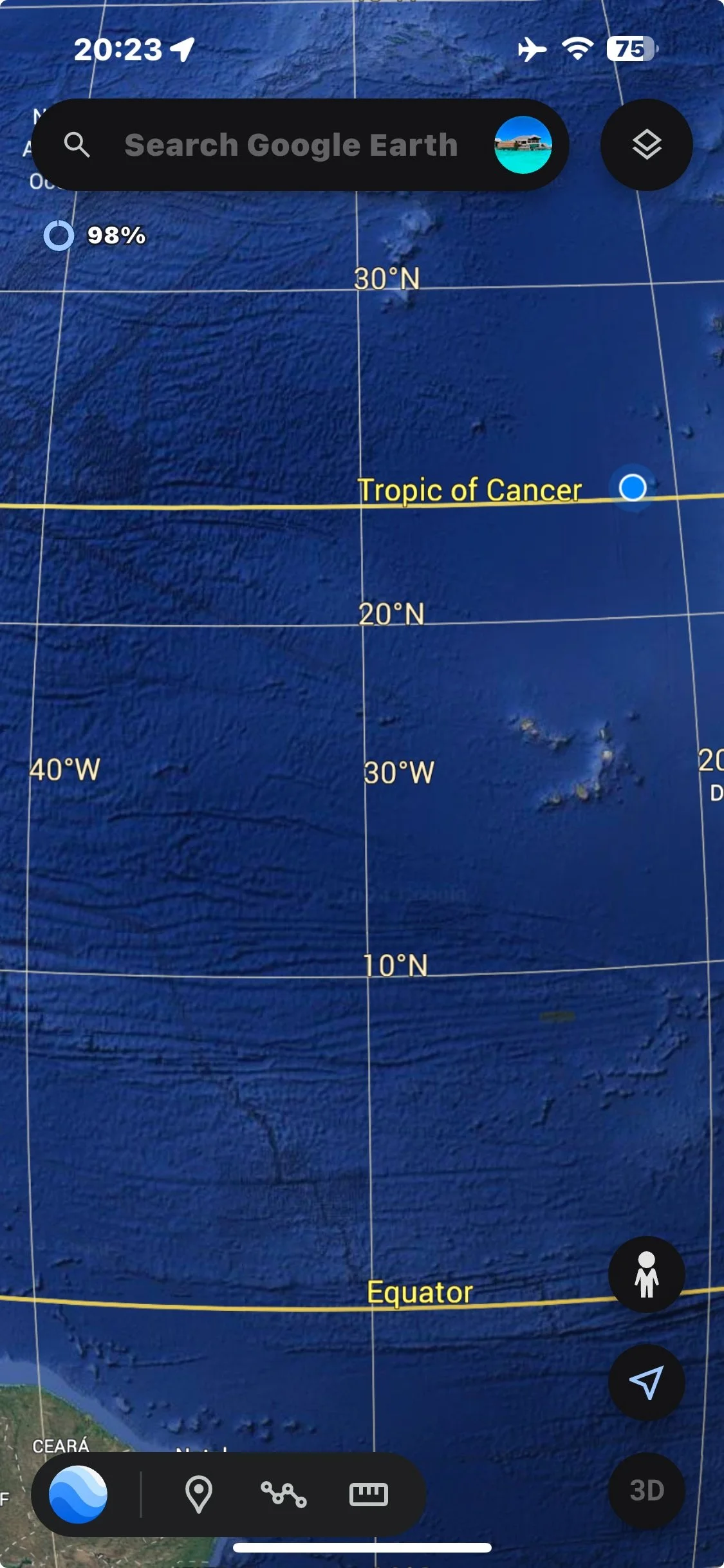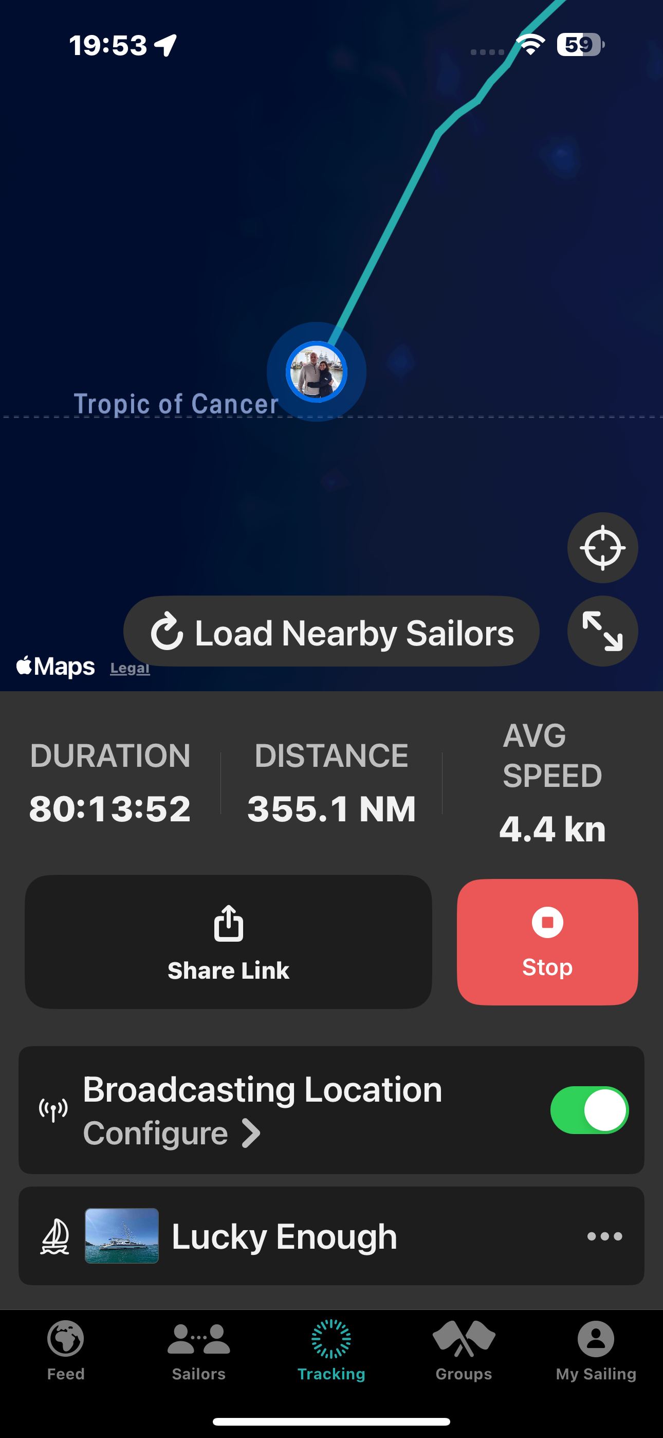 And just as the Code D went up at 10 p.m., we crossed the Tropic of Cancer—80 hours into our passage.
