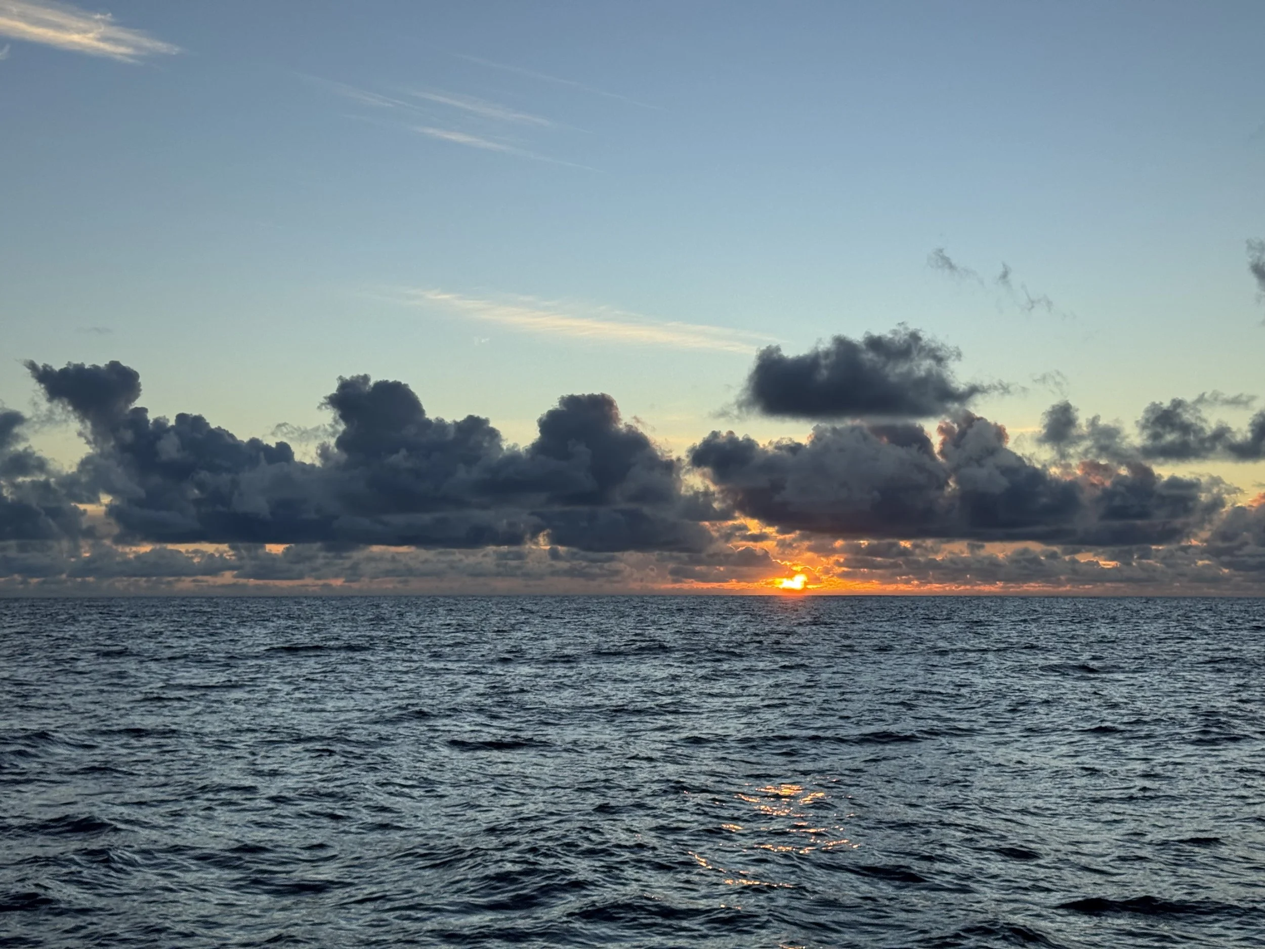By evening, Ryan and I watched the sun set while playing cribbage during my shift. That first night brought the magic of glowing plankton swirling in our wake. I tried to catch it on video, but it’s one of those fleeting wonders best kept as a memory. (That’s code for the video didn’t turn out.)