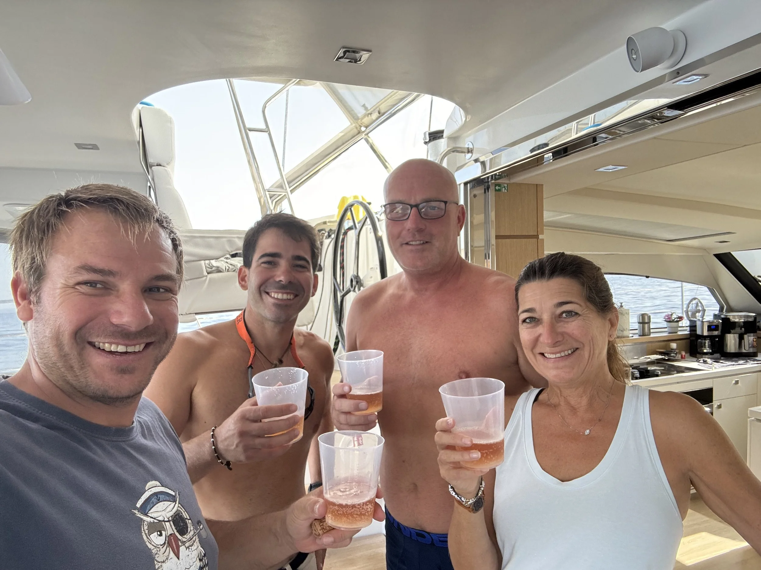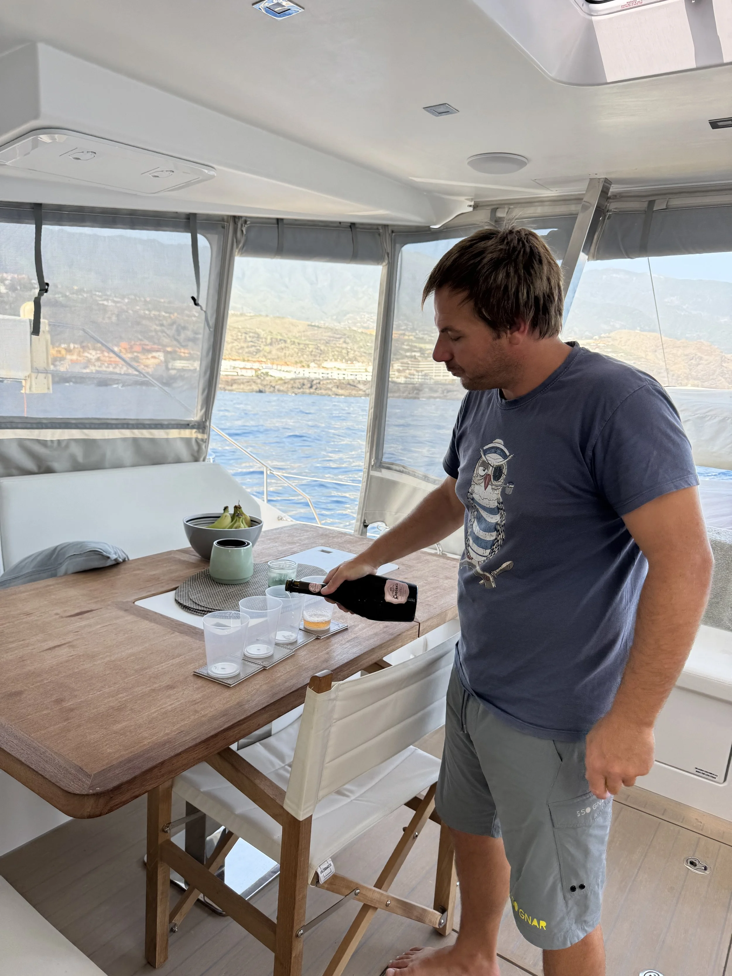 In ancient Greece, sailors would pour libations to the god of the sea to ask for calm waters and safe passage. It felt fitting to carry on that tradition as we set out on our first Atlantic crossing. Cheers, Poseidon—and to this great adventure ahead.