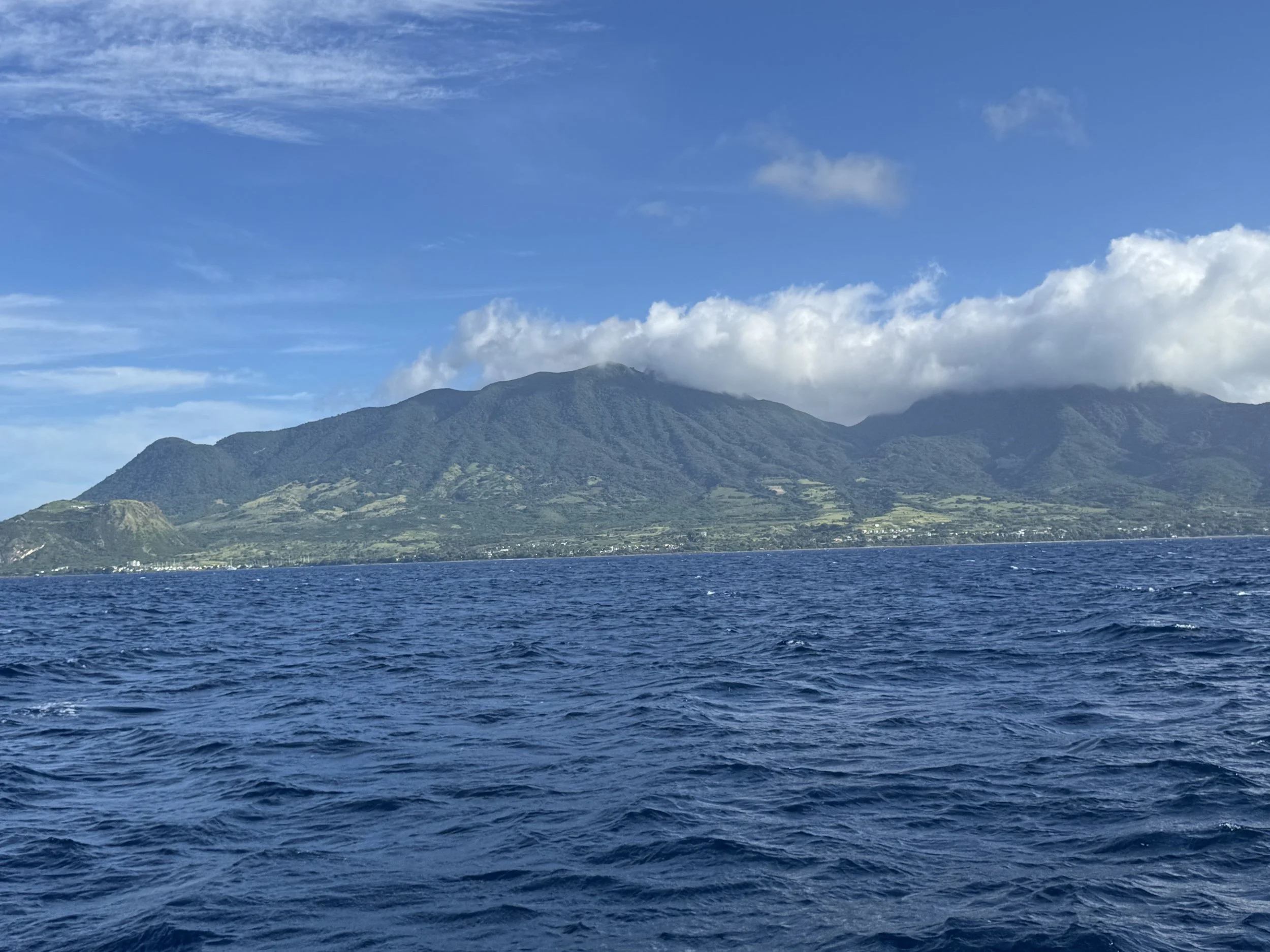The seas had laid down, and with only 10 knots of wind, it wasn’t a sailing day. Instead, we motored past St. Kitts.