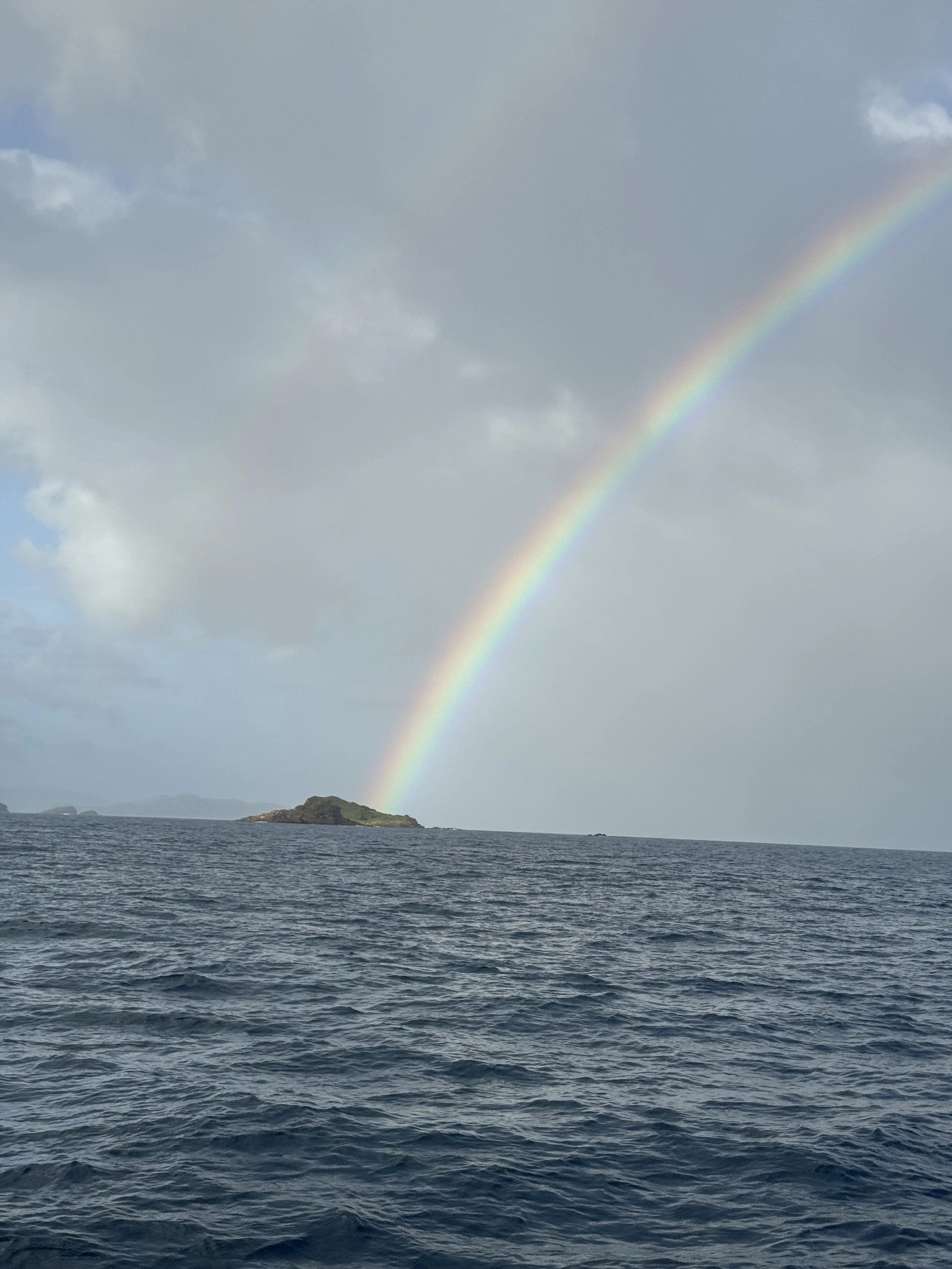 We set off for the BVIs at 7am, slipping away before any marina charges could find us. Our destination: Virgin Gorda, a 20-hour trip with the option to stop for a mooring ball at Saba Rock’s Well’s Bay along the way. Regardless of what the day might throw at us, food was prepped, rest was banked, and excitement was bubbling over—we’ve been dreaming about this arrival for so long.